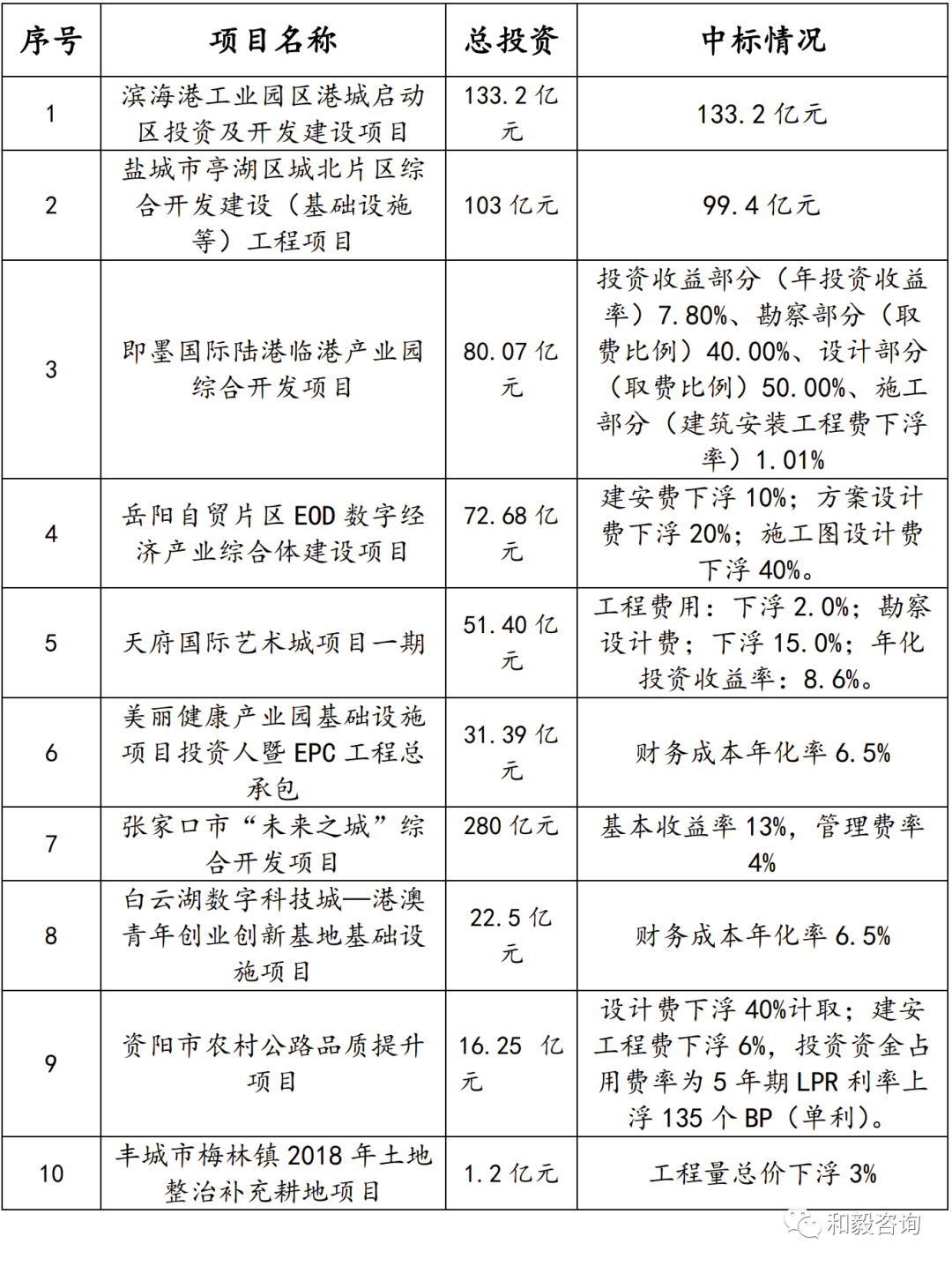 表4 國內“投資人+EPC”典型項目中標情況表