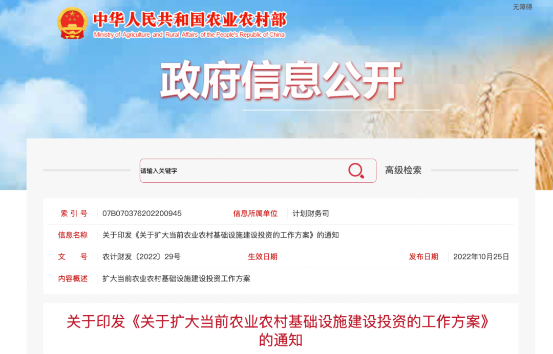 在工作推進中,一要體現快速,抓住秋冬農閑有利時機,已開工的項目加快進度,已批復的項目抓緊開工,已下達的投資計劃抓緊落實到位,集中時間、聚集資源、聚合力量,加快建設,確保年內見效;二要突出重點,聚焦灌區等水利設施補短板和改造升級、受災地區農業設施修復,以及事關食物產能鞏固提升和農業提質增效的項目,在完成既有建設任務的基礎上,適當增加建設量,促進生產發展,改善農村民生;三要創新機制,以省為單位,允許跨市、跨縣打捆打包推進,堅持多元化主體共同參與建設,創新農業農村基礎設施投融資機制,在不新增地方政府隱性債務的前提下,推動政府投資和金融社會資本聯動投入、助農興村;四要注重實效,加強組織實施,務求選準項目,建立項目臺賬,確保盡快建成并發揮效益,形成投資拉動效應。
