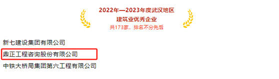 11月21日,武漢建筑業協會正式公布“2023年度武漢市最具成長性民營建筑企業”、“2022-2023年度武漢地區建筑業優秀企業、優秀企業家、優秀總工程師、優秀項目經理”兩項評選結果,鼎正連續上榜,斬獲多項行業榮譽!